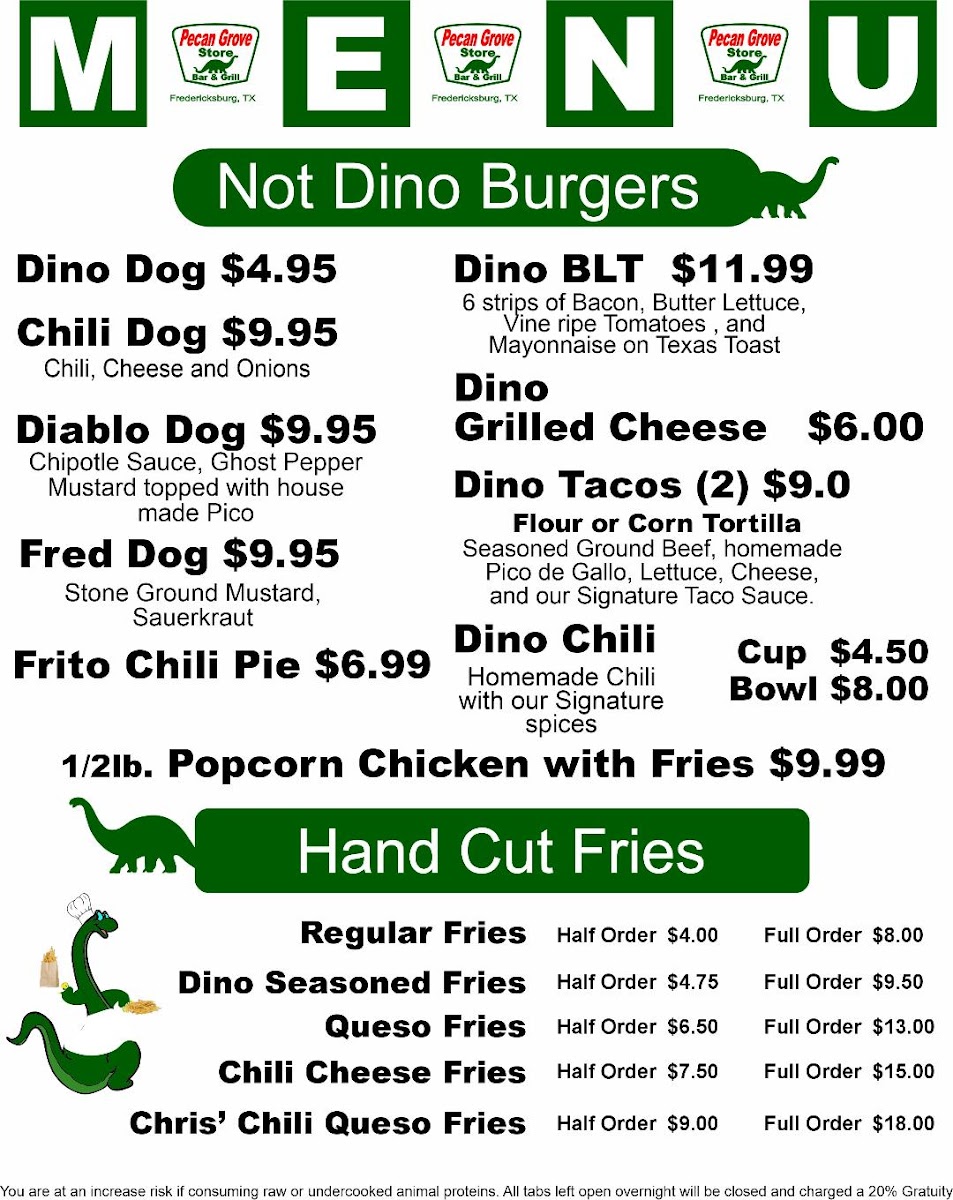 Welcome to Pecan Grove Store, a hidden gem located at 5244 N State Hwy 16, Fredericksburg, TX. This lively eatery boasts an impressive American menu primarily focused on burgers, capturing the essence of Texas hospitality.